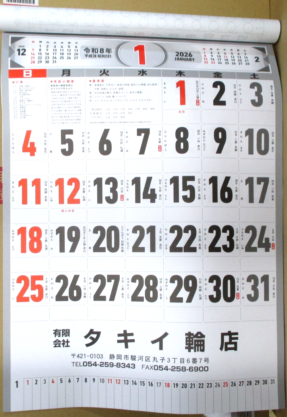当店オリジナルの2026年カレンダーをプレゼントしております。